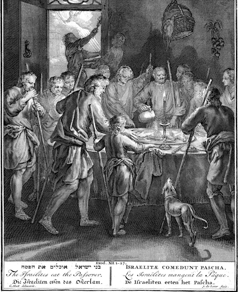 Later the night, the Lord “passed over” the houses with blood on the doorposts. But, for the Egyptian homes that lacked the blood, the firstborn males of all men and beasts died. On the morrow, the anguished Pharaoh immediately thrust the Hebrews from Egypt, which initiated the Exodus.